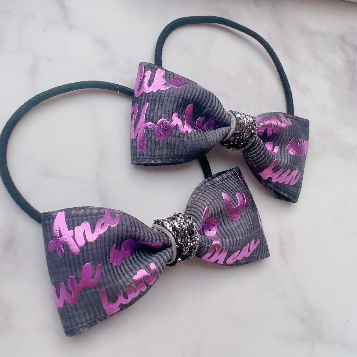 ブラックデニム風♡pinkメタリック輝くフリルたっぷりリボン4個セット