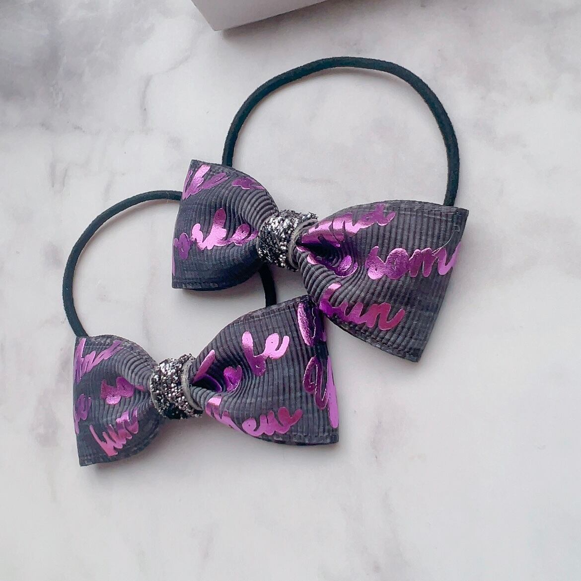 ブラックのデニム風リボンと