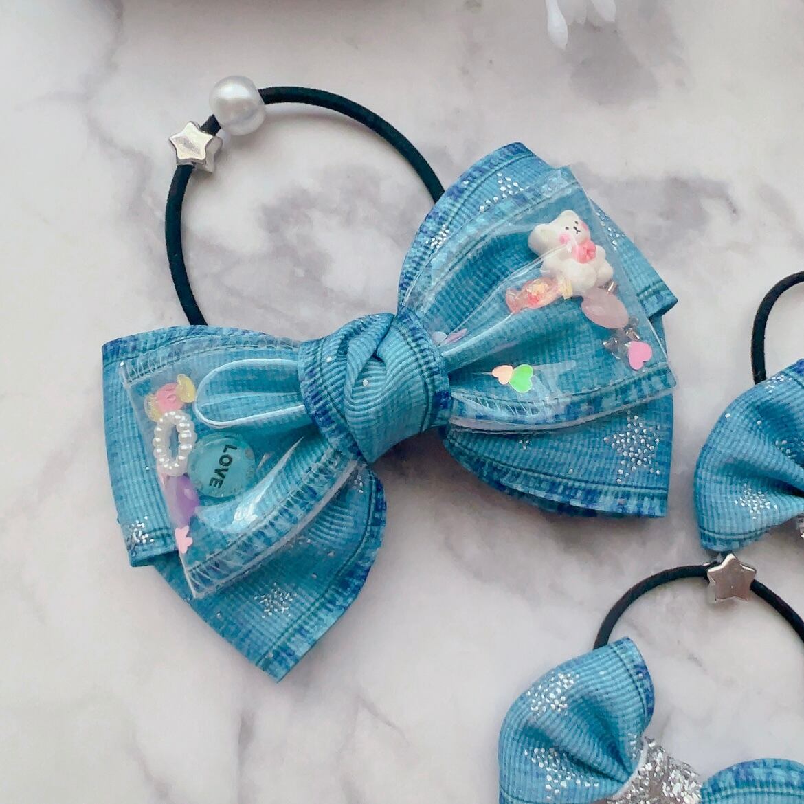 淡いデニム♡夢いっぱいのシャカシャカリボン