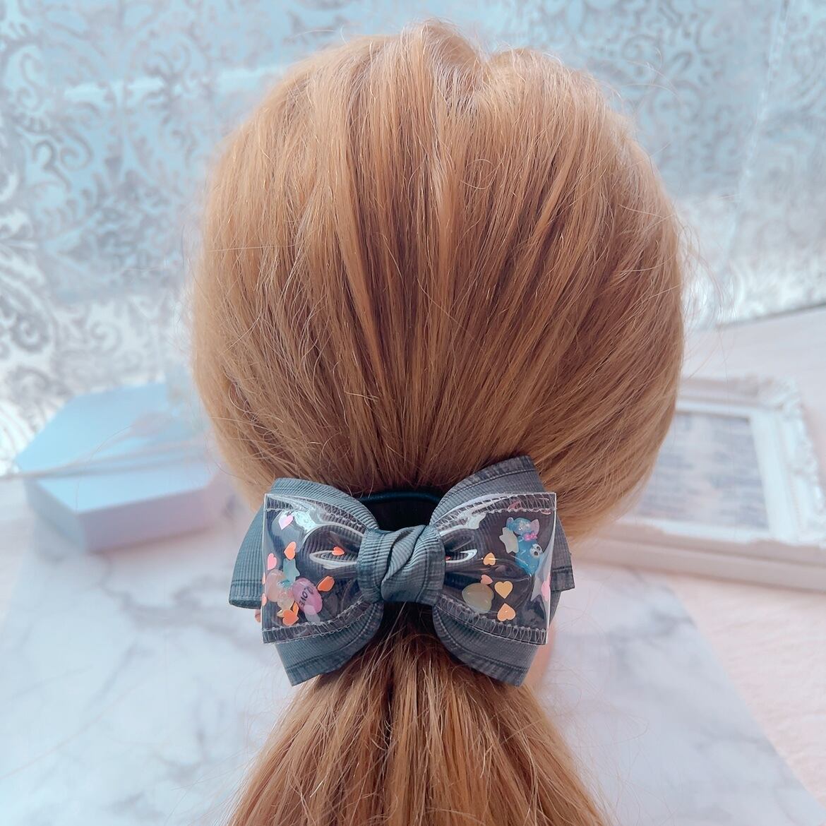 淡いブラックデニム♡ 夢いっぱいのシャカシャカリボン ヘアゴム3個セット