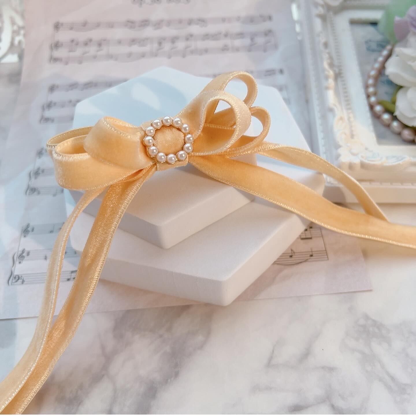 ふんわりクリーム♡ MOKUBAベルベットの細たらりんリボン